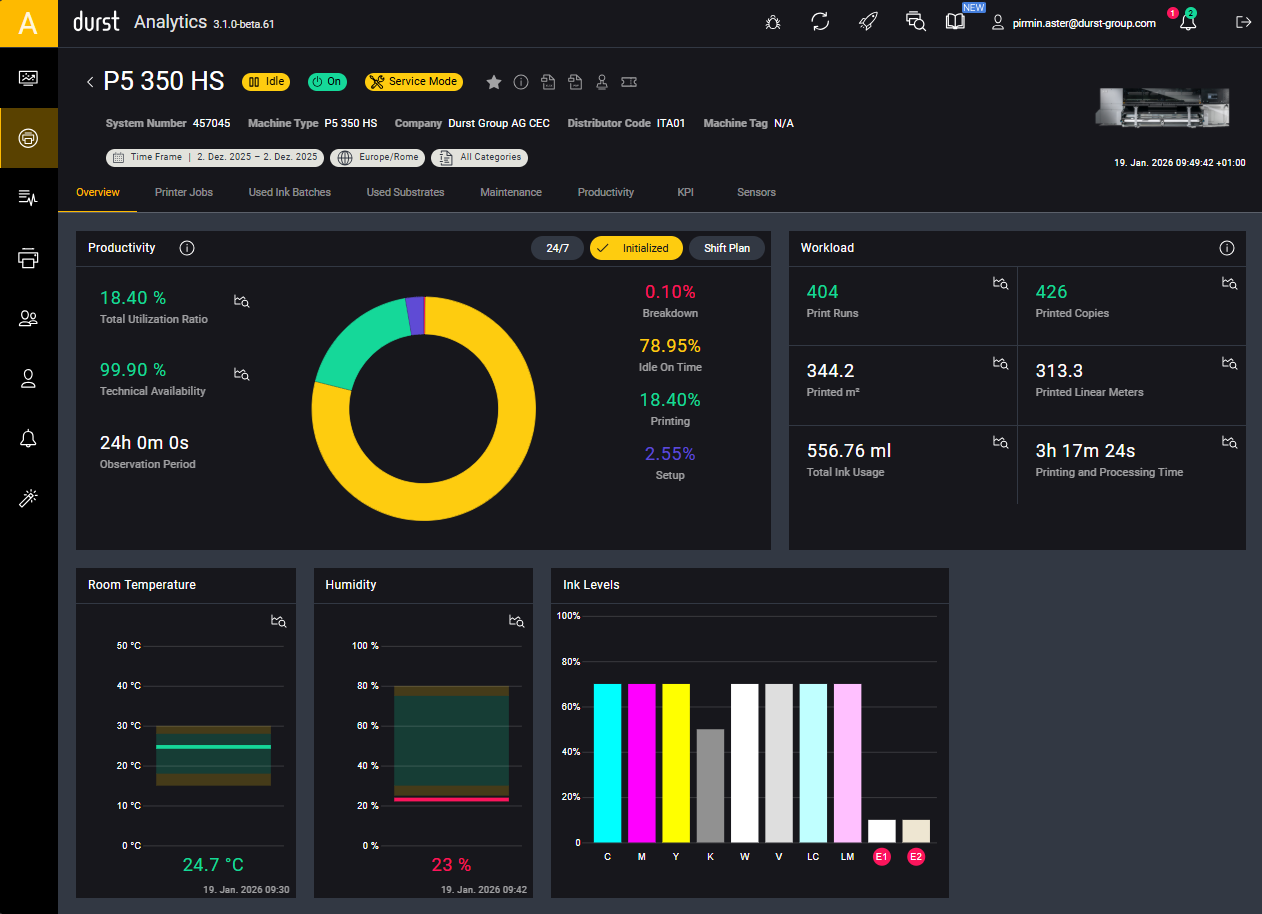 The printer details section in the Durst Analytics Cloud is the same one like in the Durst Analytics Collector.