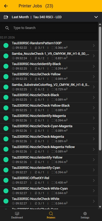 The Printer Jobs section displays a list of all jobs printed on the selected printer.